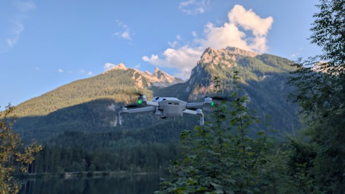 Mal ein Schnappschuß auf meine Drohne DJI Mini 4 Pro. Im Hintergrund der Hochkalter direkt am Hintersee bei Ramsau - Berchtesgadener Land